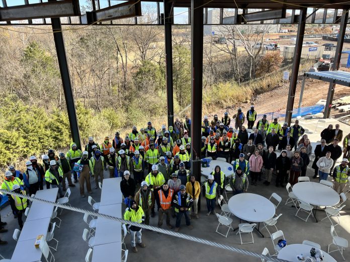 The Nov. 12 ceremony commemorated placement of the final structural beam — a construction tradition recognizing progress and the collective efforts of builders, partners and supporters.