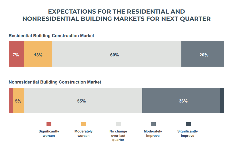 Positive outlook: Commercial, office, lodging, education, and healthcare sectors have seen improved sentiment. There’s also continued optimism in residential work, healthcare, education, predesign work, and consulting planning. Manufacturing, industrial, and transportation sectors show particular strength compared to the last quarter.